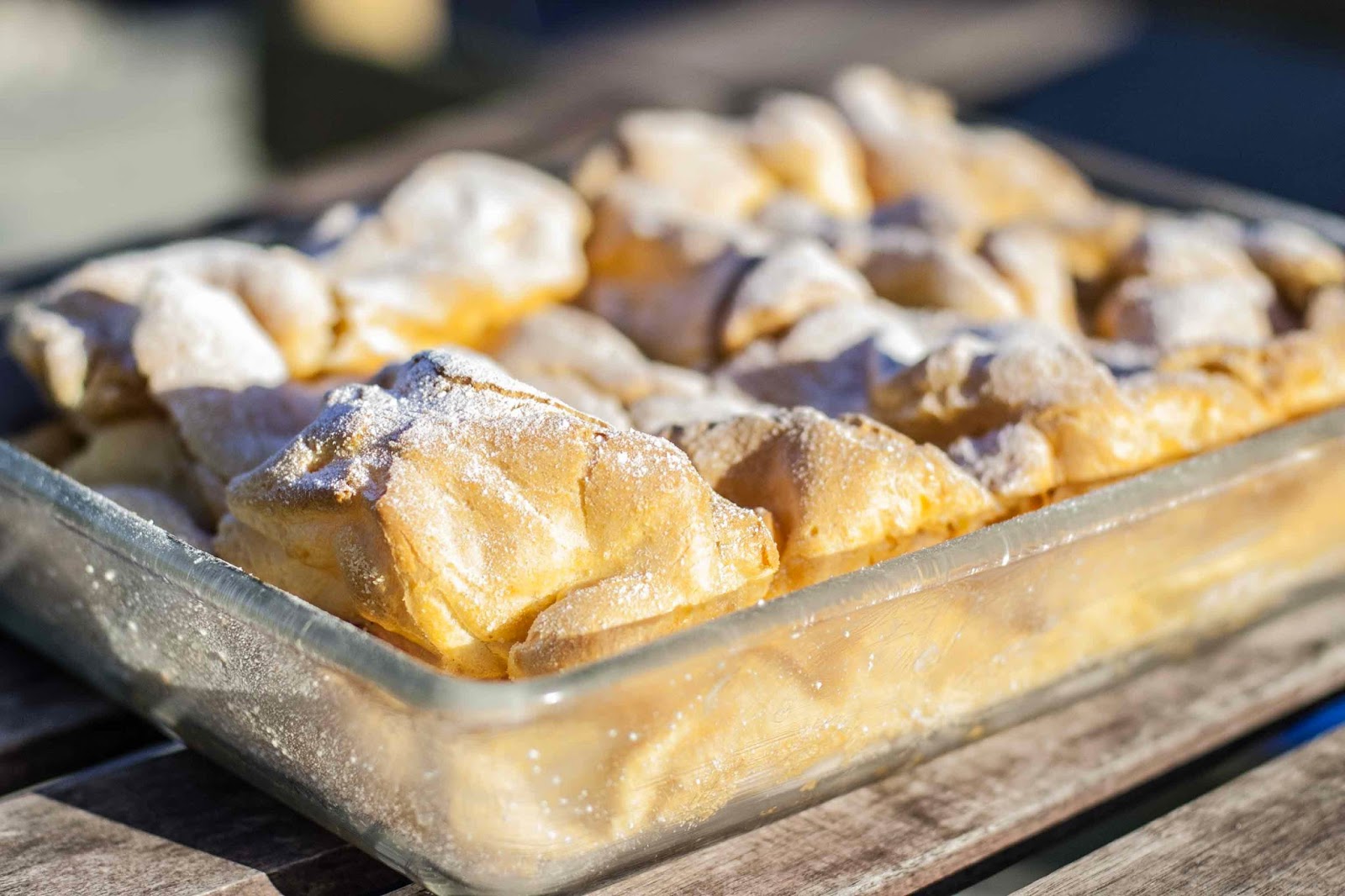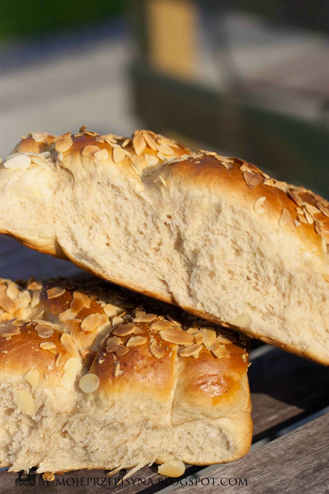 Wystudzony warkocz pokroić na plastry o grubości około 2 cm. Poukładać na talerzu, sos przelać do kokilki lub małej miseczki. Danie je się rękami, więc każdy bierze sobie kawałek warkocza i macza w sosie. Z jednego opakowania ciasta wyszło mi 16 pasztecików.