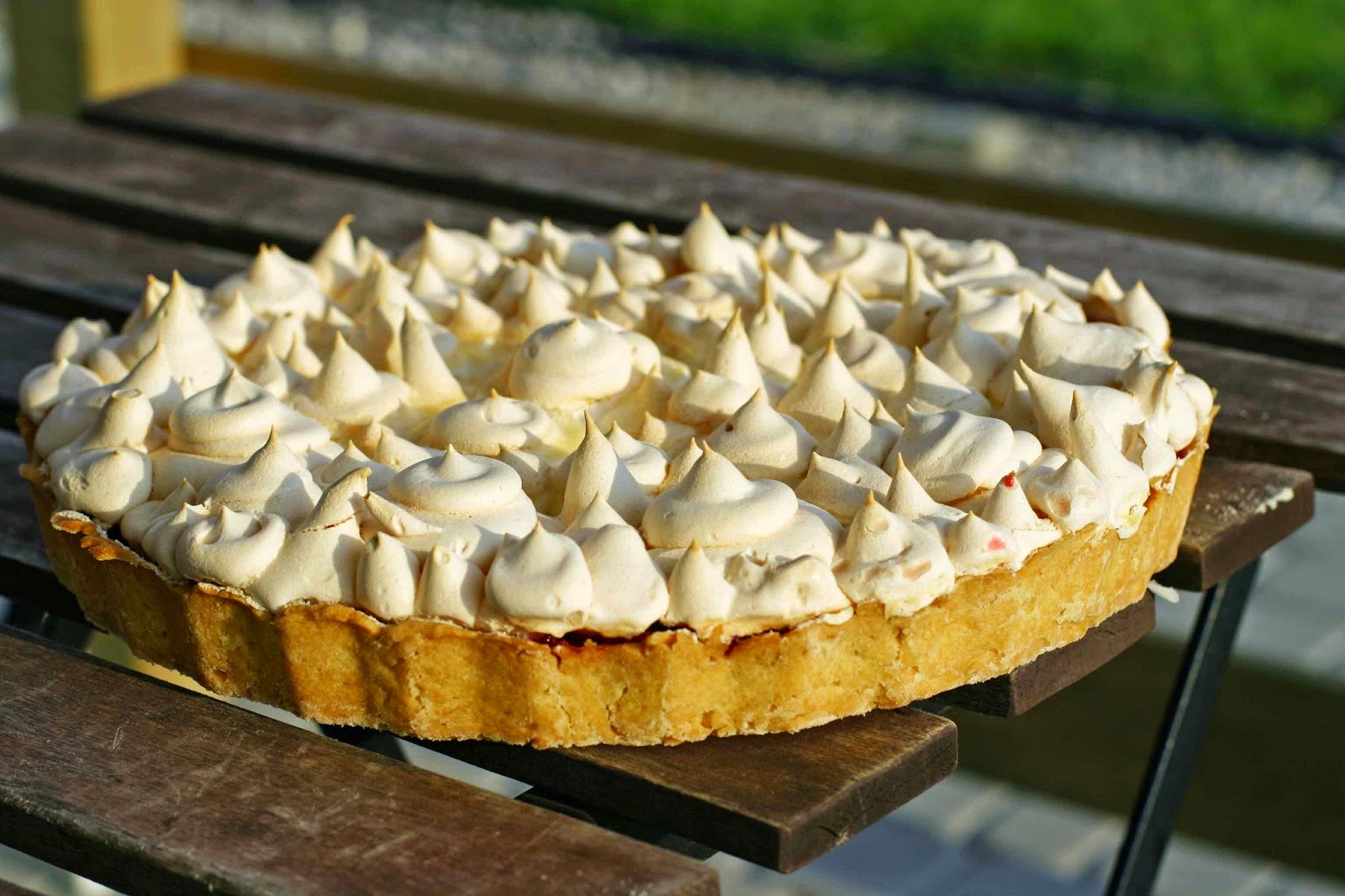 Tarta składa się z przepysznego ciasta kruchego, kwaskowatej warstwy porzeczkowej, słodkiej pianki bezowej i chrupiącej skórki bezowej.