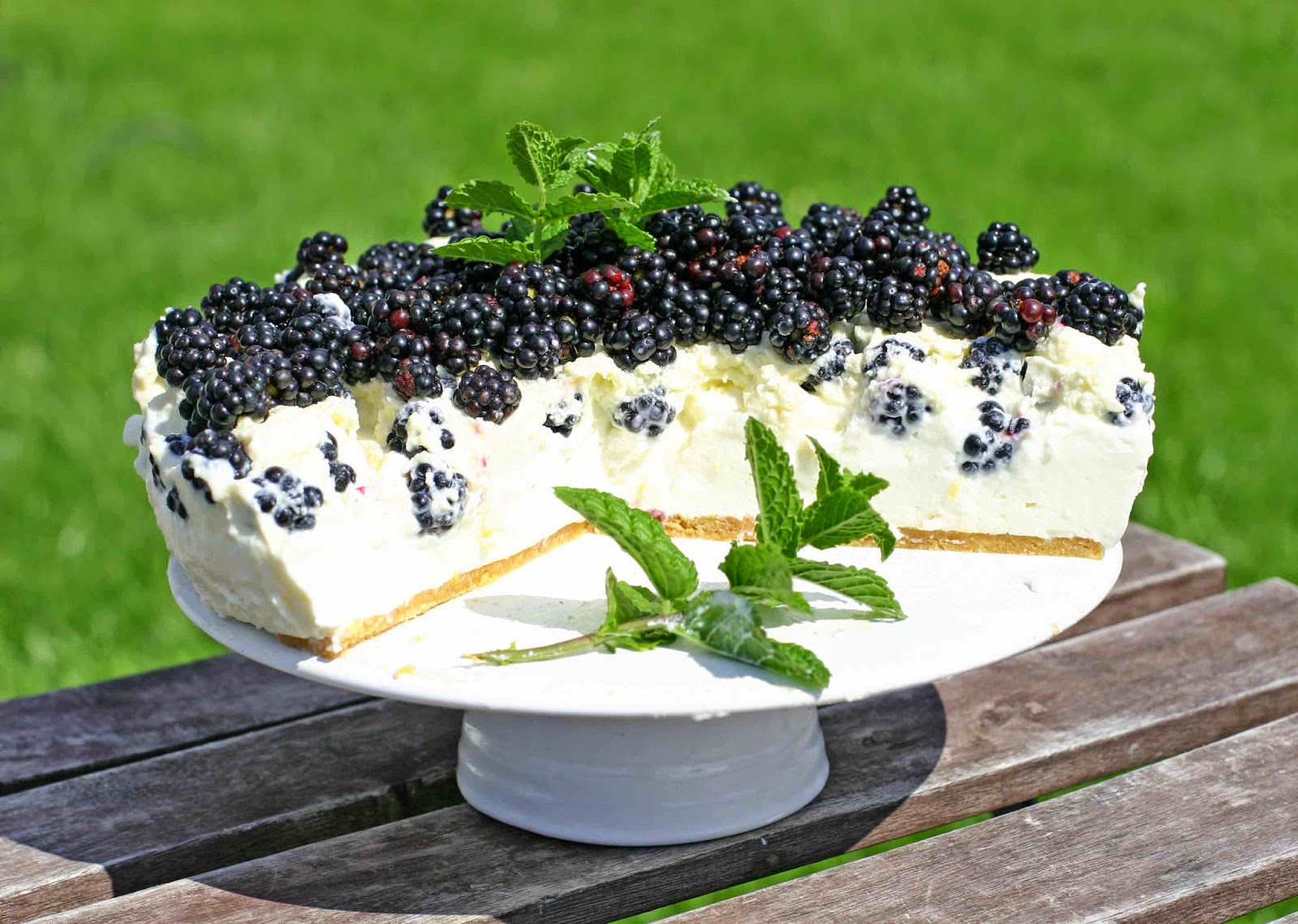 Moje zmiany to spód z ciastek maślanych (około 170 gr na 50 gr masła), tortownica 23 cm, 8 łyżek cukru pudru zamiast 250 gr. Wierzch sernika posmarowałam 150 gr śmietany kremówki ubitej z 250 gr mascarpone i 3 łyżkami cukru pudru, a na to dałam solidną porcję jeżyn.