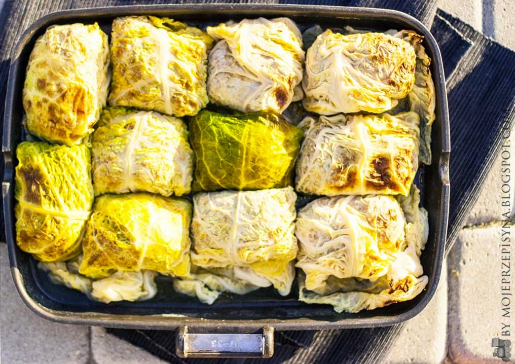 gołąbkami do połowy wysokości. Piec 40 min w 150 st. z termoobiegiem.