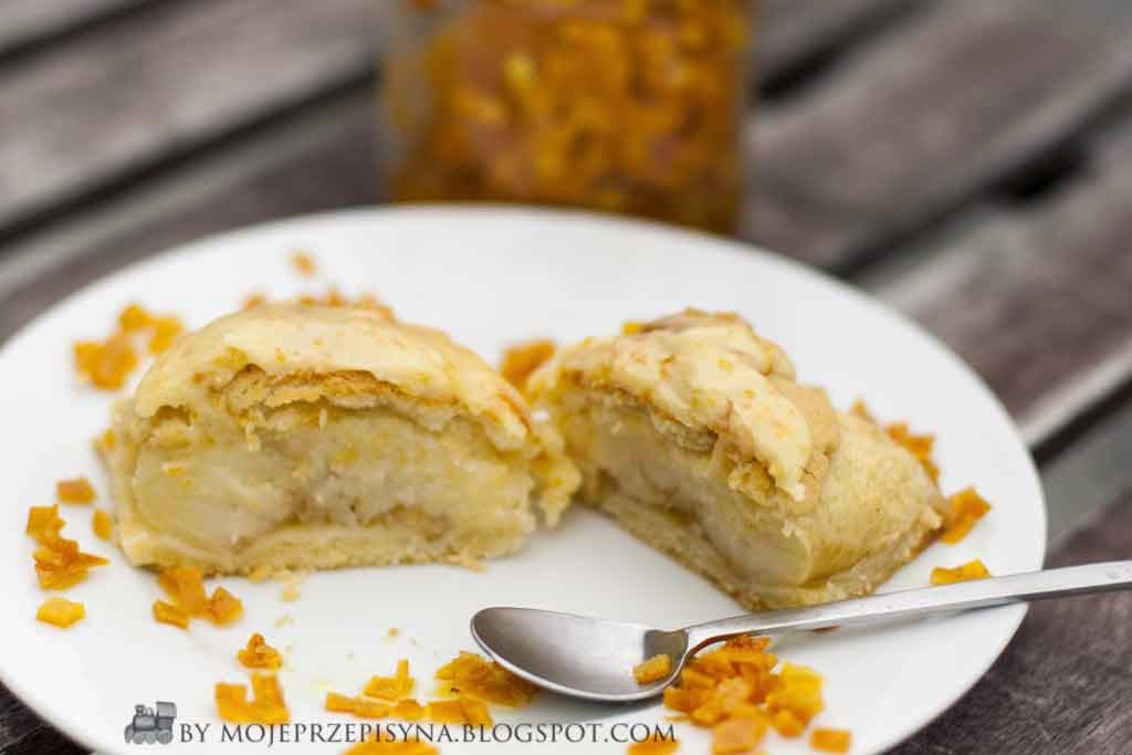 Szarlotka z połówek jabłek z lukrem pomarańczowym